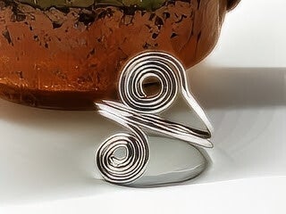 Size 8, hand-made, silver plated swirl ring. Other sizes can be ordered by leaving a message.